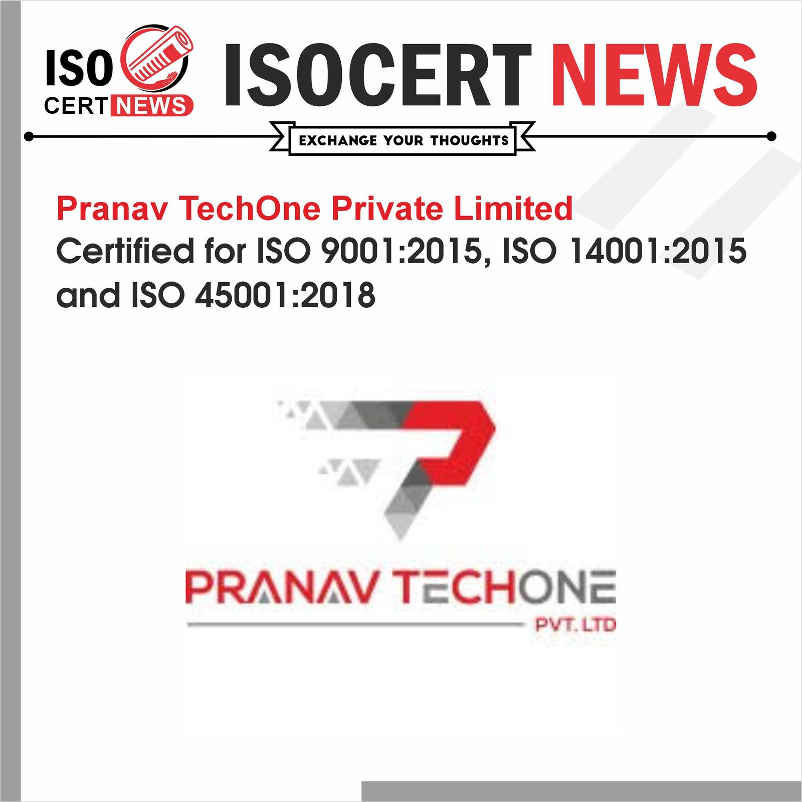 Home ISO Certifications Body Pranav TechOne Private Limited Achieves Integrated Management System with ISO 9001, ISO...