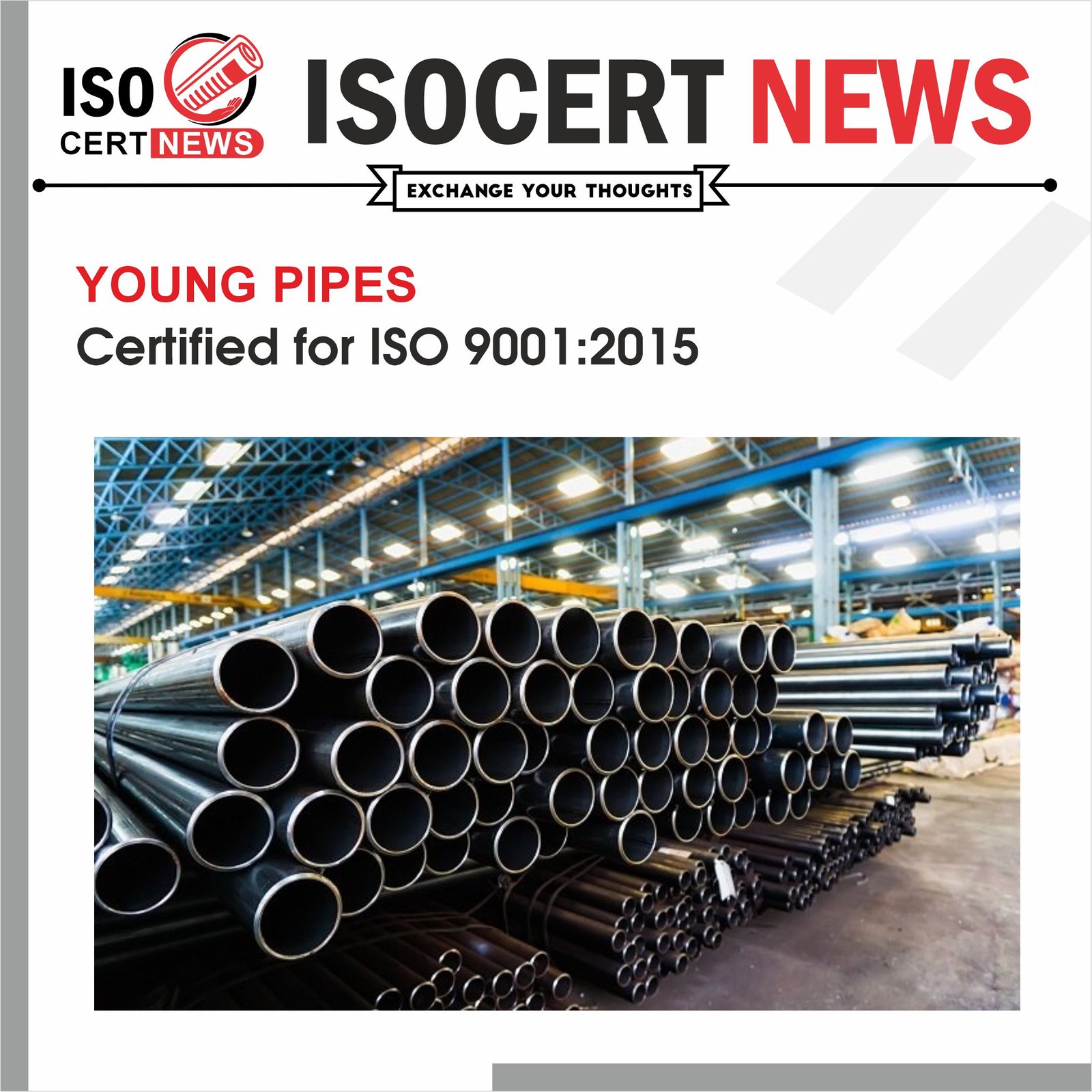 - YOUNG PIPES can use ISO 9001 as a marketing tool to meet the demands and expectations of its customers.
